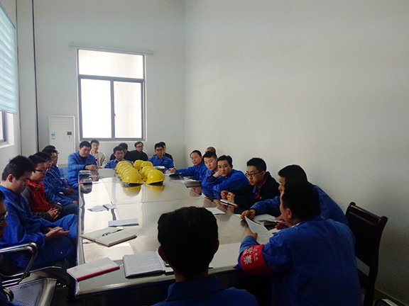 2016年02月28日下午14:00,安庆项目部在百万机组灰硫控制楼会议室,举行了继年后春节值班人员探亲回归后的规模******的一次全员大会。本次会议由项目经理王飞主持,此次会议主要分四个议程: