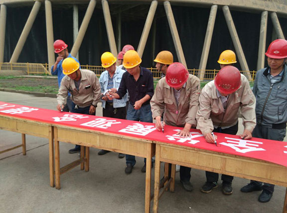会议结束,全体江苏峰业万基项目部员工举行安全承诺活动签字仪式。