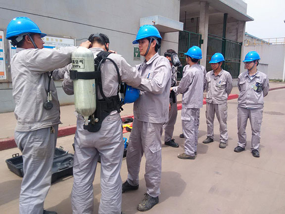 6月1日至7日是项目部安全生产月四个主题活动周的第一周——警示教育周。项目部在本周内对全体员工进行了安全教育及培训。开展了安全规程分析讨论活动,让员工剖析自己工作中的不安全行为,排查整改事故隐患,进一步加强员工遵章守纪的安全意识,杜绝违章行为。组织全体员工观看了《生产安全事故典型案例盘点》(2015版)等安全教育警示片,同时结合首钢总公司安全处下发的2014年至今的伤亡事故案例,以惨痛的事故教训为员工们敲响安全警钟,强化安全意识,培养良好的安全行为。本周项目部在重大危险源——脱硝液氨区对所有员工进行了劳动防护用品空呼机的正确使用培训,特别对新进员工进行了详细的讲解液氨防护知识,做到让每位员工熟练使用安全应急设备,为下一步安全生产应急演练周做好工作准备。