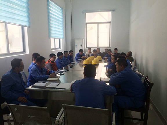 2016年02月28日下午14:00,安庆项目部在百万机组灰硫控制楼会议室,举行了继年后春节值班人员探亲回归后的规模******的一次全员大会。本次会议由项目经理王飞主持,此次会议主要分四个议程:
