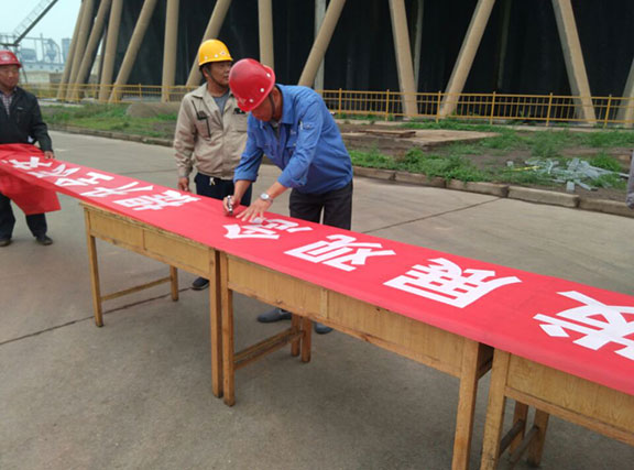 会议结束,全体江苏峰业万基项目部员工举行安全承诺活动签字仪式。