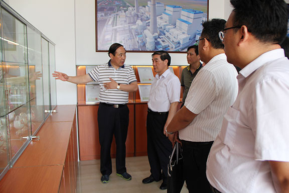 虽然赤日炎炎,有了领导们的支持和关心,整个公司如同沉李浮瓜。许董事长陪同各领导参观了我们的展览厅,详细介绍了我公司的运转模式、环保理念及先进的技术水平。