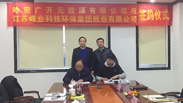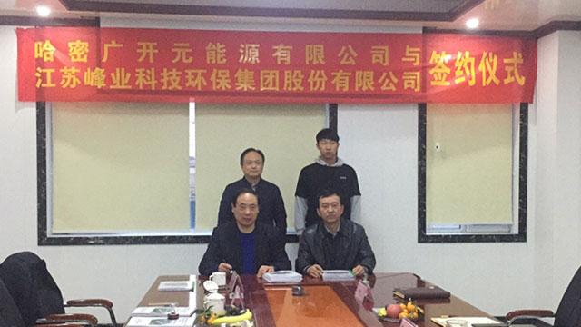 2018年11月23日,新疆哈密广开元能源有限公司与我公司(江苏峰业科技环保集团股份有限公司)在乌鲁木齐新疆广开元公司总部举行了广开元10万吨/年(一期)工业硅项目炉后、炉前环保岛、脱硫废水、生活废水EPC工程的设计、采购(制造)及安装(施工)合同签约仪式,EPC总承包价格4.1188亿元人民币。