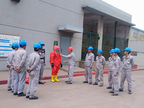 6月1日至7日是项目部安全生产月四个主题活动周的第一周——警示教育周。项目部在本周内对全体员工进行了安全教育及培训。开展了安全规程分析讨论活动,让员工剖析自己工作中的不安全行为,排查整改事故隐患,进一步加强员工遵章守纪的安全意识,杜绝违章行为。组织全体员工观看了《生产安全事故典型案例盘点》(2015版)等安全教育警示片,同时结合首钢总公司安全处下发的2014年至今的伤亡事故案例,以惨痛的事故教训为员工们敲响安全警钟,强化安全意识,培养良好的安全行为。本周项目部在重大危险源——脱硝液氨区对所有员工进行了劳动防护用品空呼机的正确使用培训,特别对新进员工进行了详细的讲解液氨防护知识,做到让每位员工熟练使用安全应急设备,为下一步安全生产应急演练周做好工作准备。